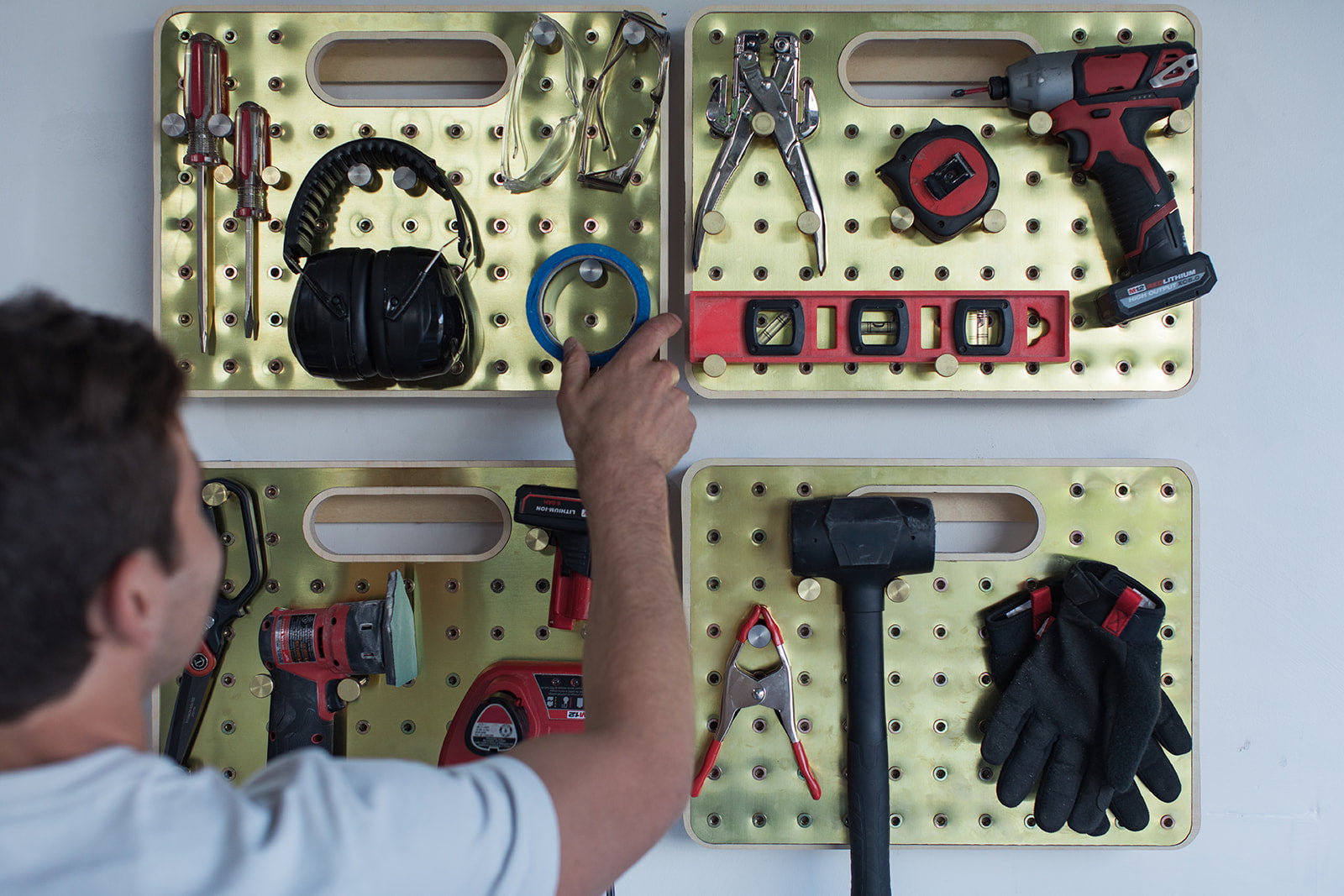 Load it with the tools you need, lift it from the wall with the built-in handle, and bring it wherever the job takes you. The threaded peg system locks each tool securely in place, while dual-purpose hooks let Rigge hang on doors, mount on walls, or stand on its own — always keeping your essentials within arm’s reach.